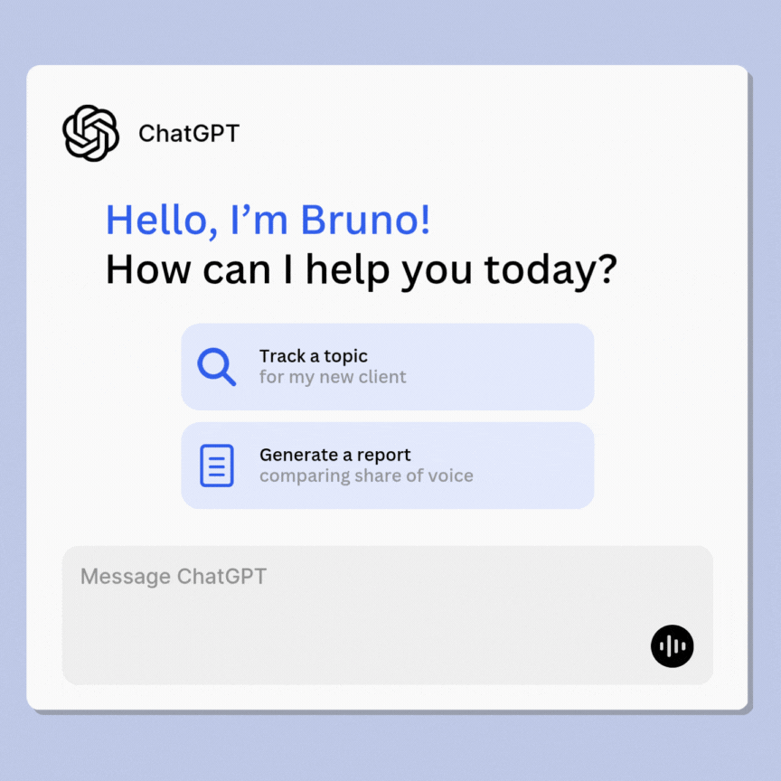 Talk to Bruno, your AI-powered assistant, directly in ChatGPT. Ask questions, track topics, and generate insights on demand.